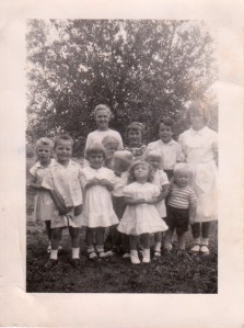 Two hours passed and it was time for Ma and I to say goodbye to our guests. But not before photos were taken. Out to the front lawn we marched. There we posed before Ma’s Kodak Brownie. Group shots. Singles. Pairs of friends. Squinting into the sunshine. Shy smiles. And big grins.