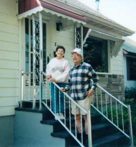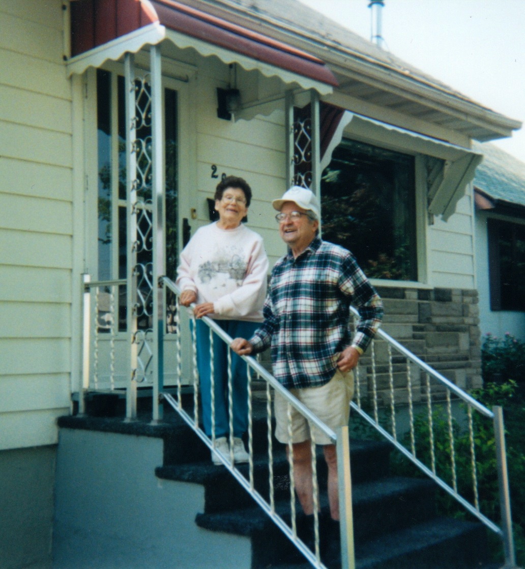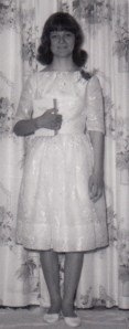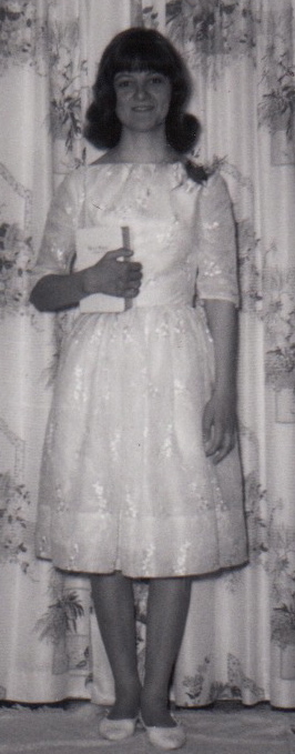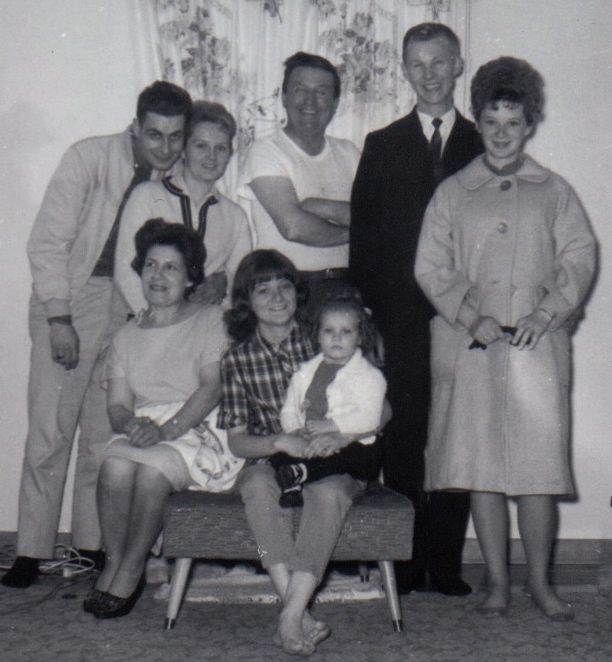 The family gathered after the Communion for Sunday dinner. The Old Man and I had already changed into more comfortable clothes for this photo. Ma in her apron over her Sunday dress.