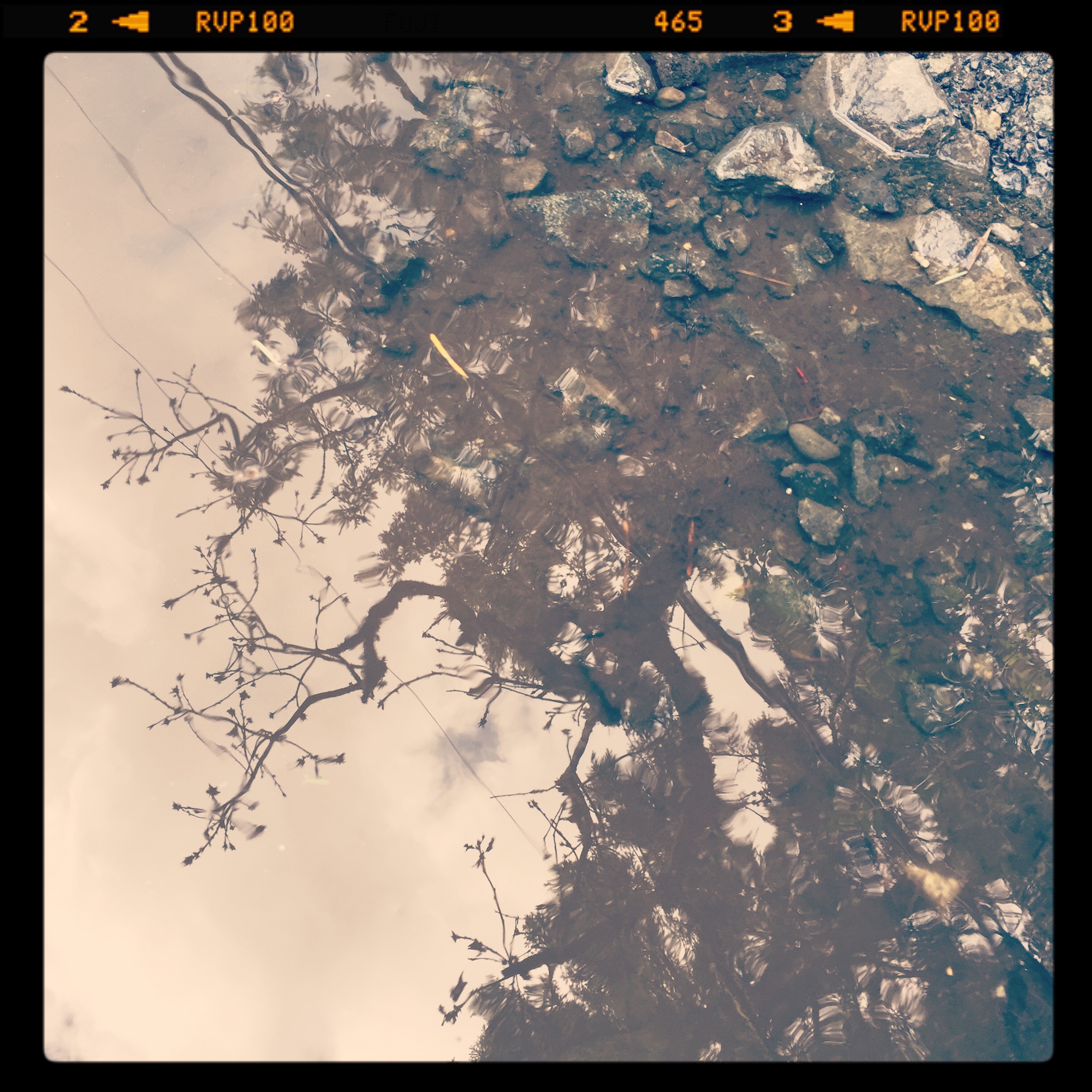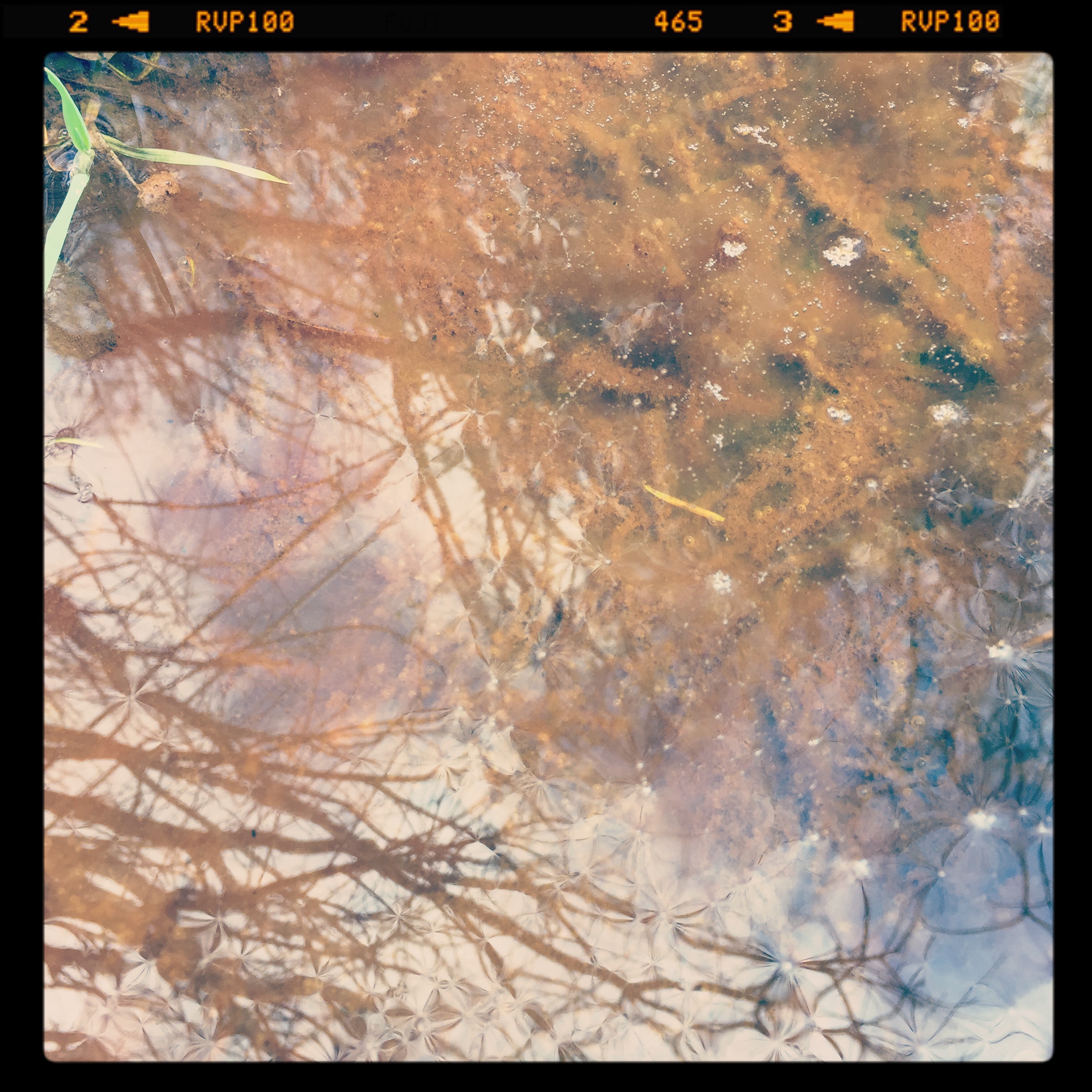 The most magical thing about the muddle puddles is this. Like snowflakes, no two are the same. And even the same puddle is different depending on the preciseness of my presence, the direction of the sun, how it skims the surface of the murky water, and of course the angle with which I peer into it. Standing. Crouching. On my knees. These all affect what I see.