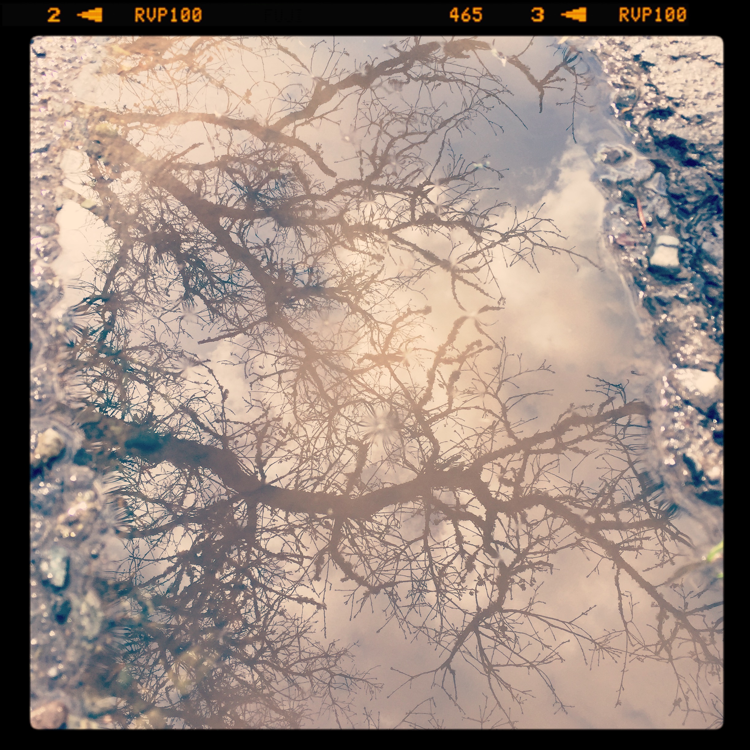 It was one of those serendipitous happy accidents. It had been pouring miserably earlier in the day. By the time I headed out for my walk, the sun was grandstanding and showing off its brilliance. It aced the surface of the mud puddle at just the perfect angle for me to see. I mean really see something so ordinary but suddenly so utterly extraordinary. Something I’d seen a million times before. Yet at that precise moment it was as if for the very first time.